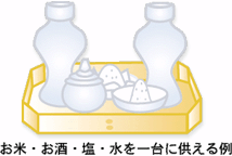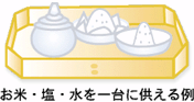 毎日お供えするものは、お米、お塩、お水の3品です。